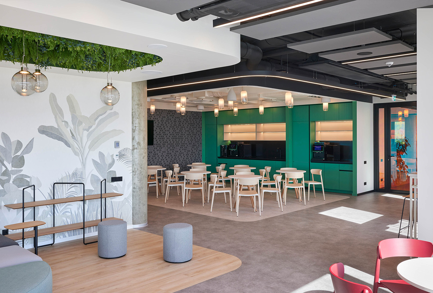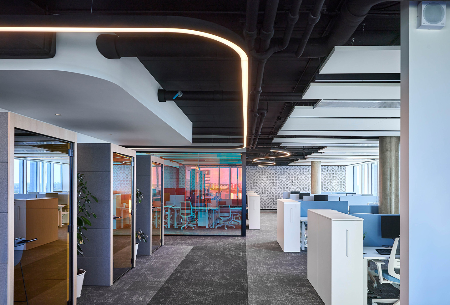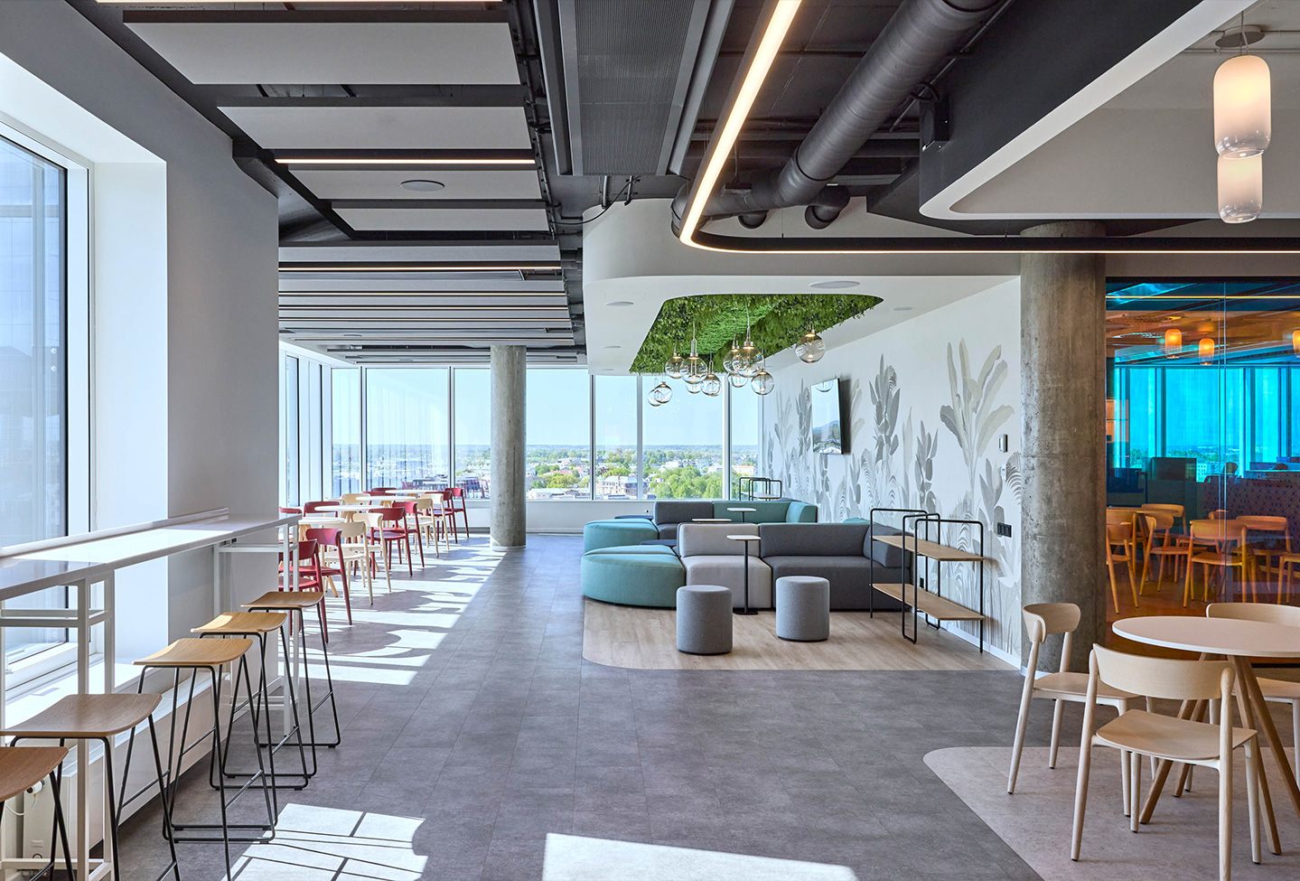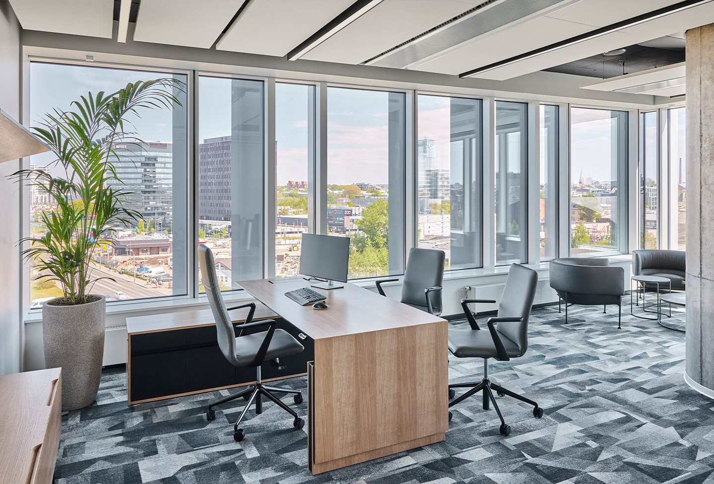 Plānošanas risinājums: lokāli privāta uzņemšanas zona, atsevišķa liela virtuve-ēdamistaba darbiniekiem, pietiekams skaits sanāksmju telpu, kabineti ir iebūvēti atvērtās brīvās telpās, atvērtas atpūtas nišas komandas darbam vai individuālam darbam.