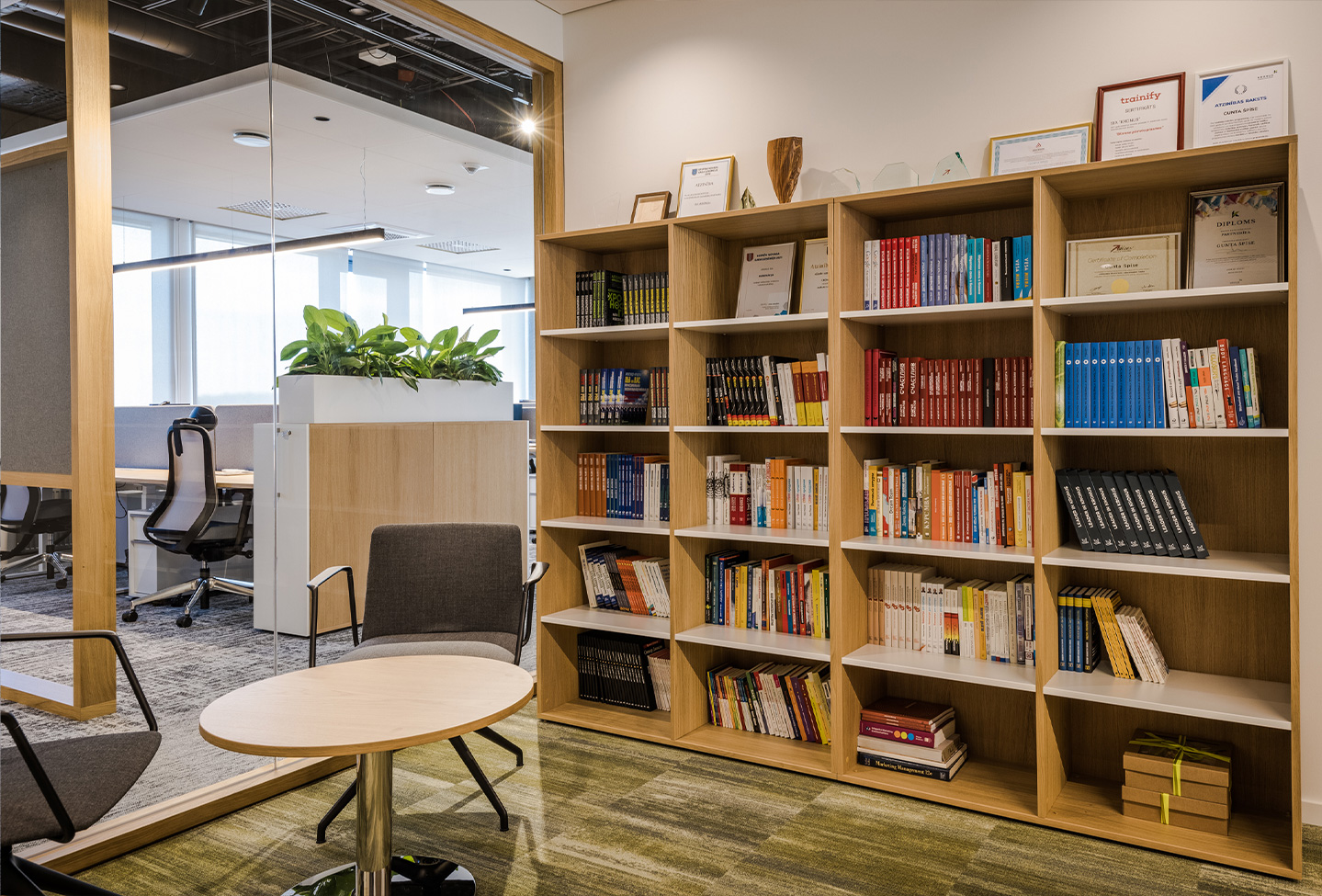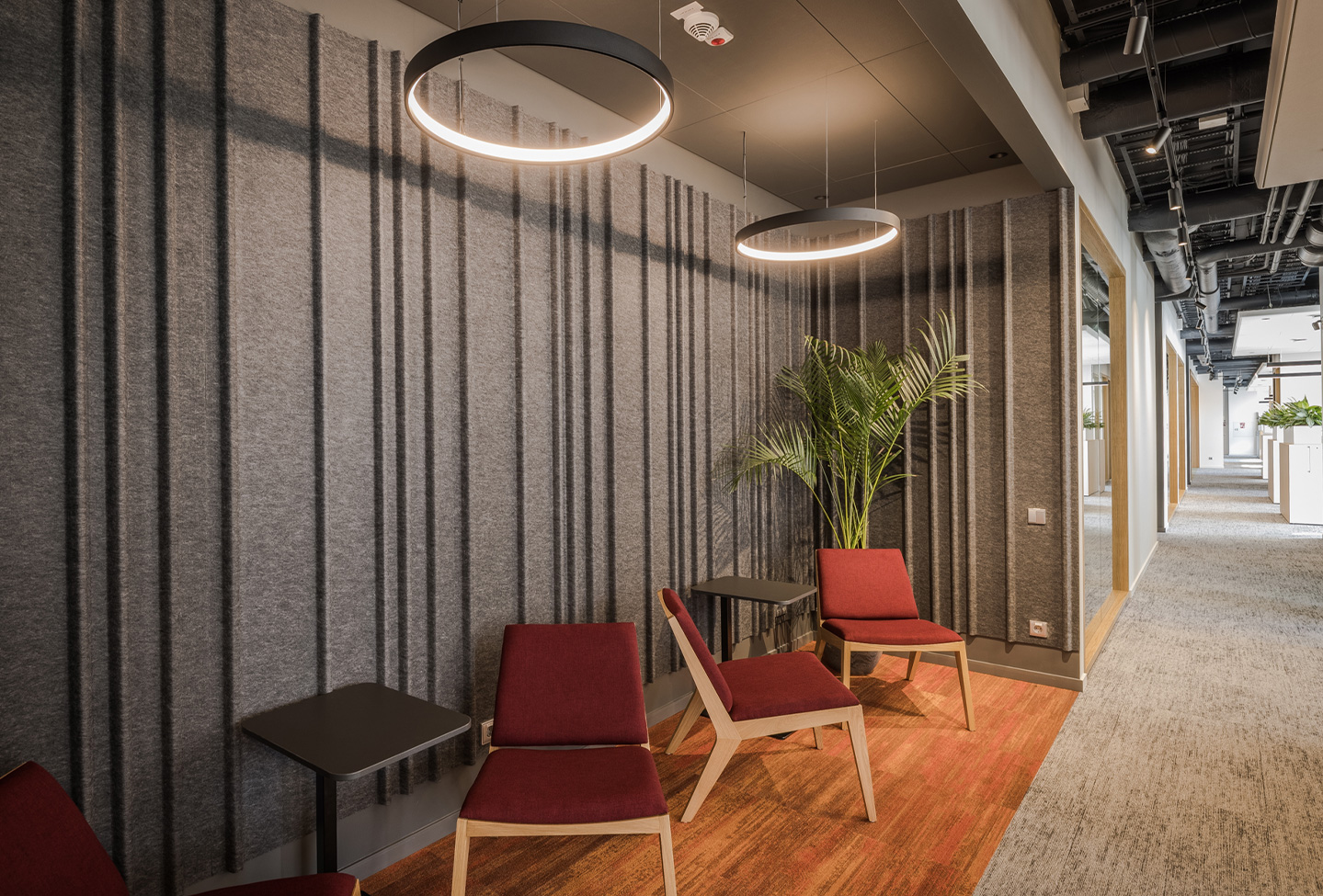 Lakonisks lofts, brutāla klasika, respektabls lofts. Pārdomāts plānošanas risinājums ar fiksētām darba vietām, kas atspoguļo klienta projektēšanas procesu stingro loģistiku. Materiāli tika izvēlēti, ņemot vērā to akustiskās īpašības komfortablai darba videi (planējoši salu griesti atvērtajā telpā, Refelt akustiskie griesti konferenču zālē, Refelt akustiskie sienu paneļi sanāksmju telpās un atklātās atpūtas zonas.